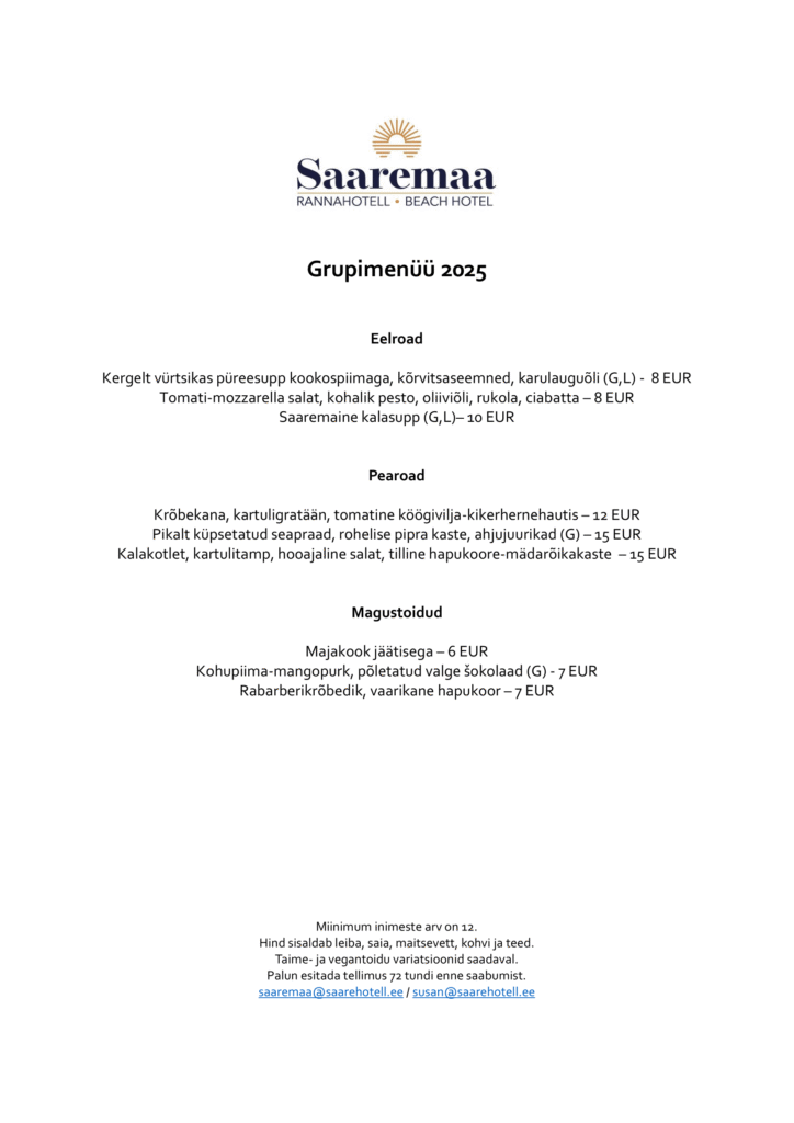 Grupitoitlustuse päringud saaremaa@saarehotell.ee